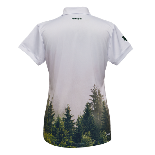 Damen-Sportpolo weiß mit Waldmotiv