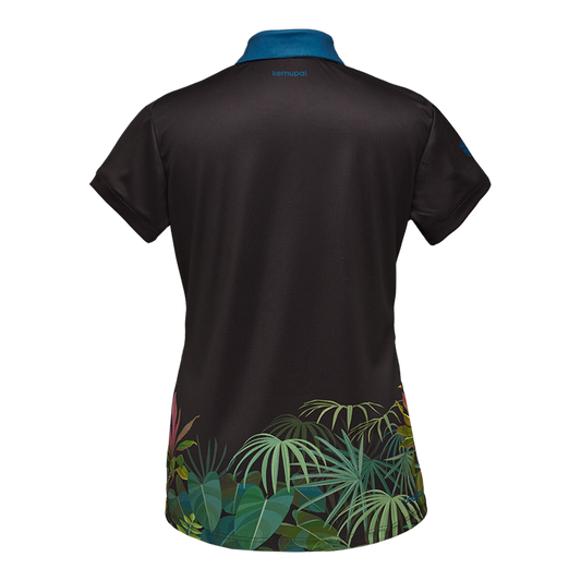 Damen-Sportpolo schwarz blau mit Motiv